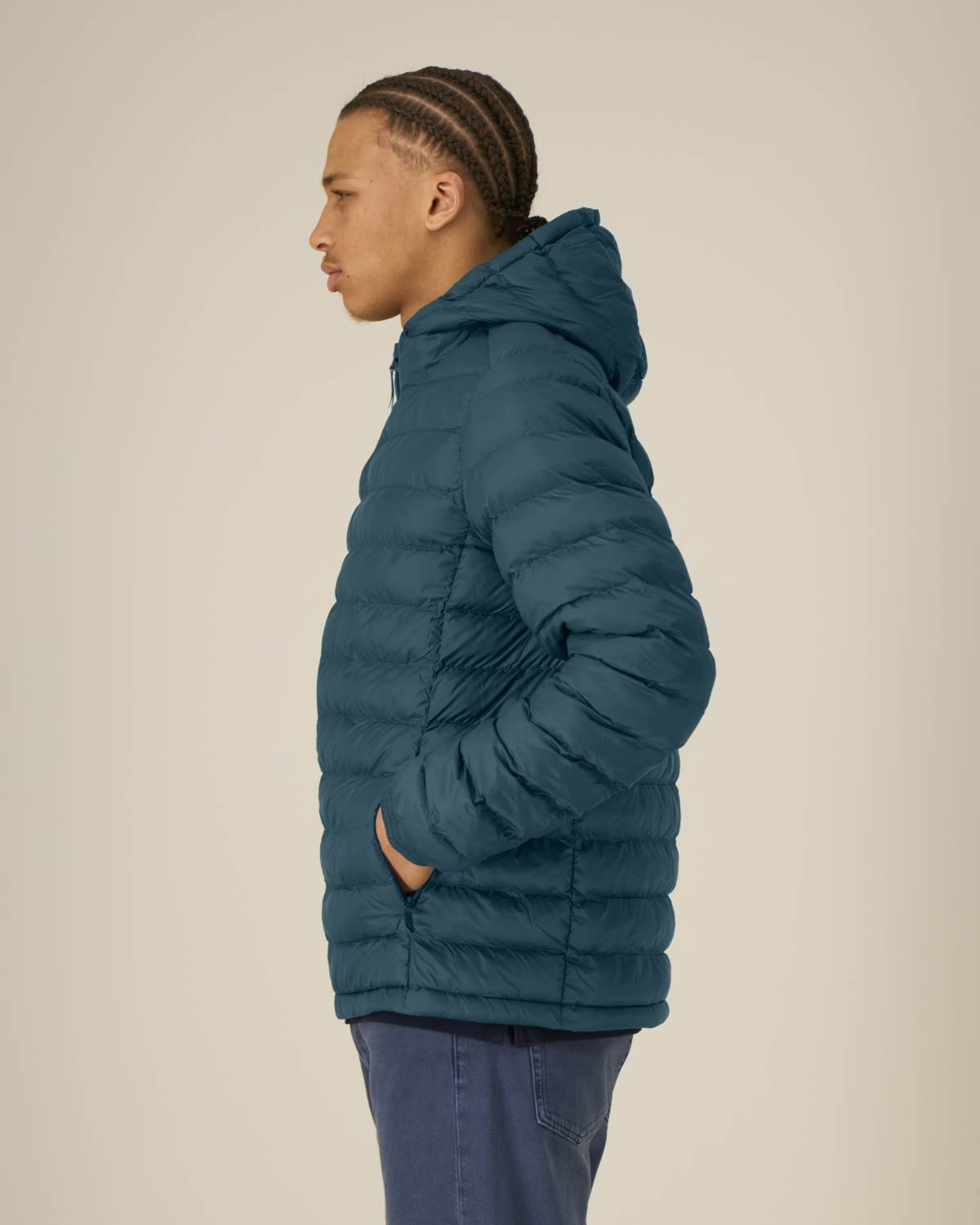 Pánská bunda s vysokým limcem s kapucí. Kapuce má elastickou stahovací šňůrku s plastovou zarážkou. Vsazené rukávy. Nylonový zip po celé délce. Kapsy na zip s taháčkem. Bunda je plně prošívaná. Boční panely pro lepší tvar. Spodní lem s elastickou šňůrkou a plastovými zarážkami.