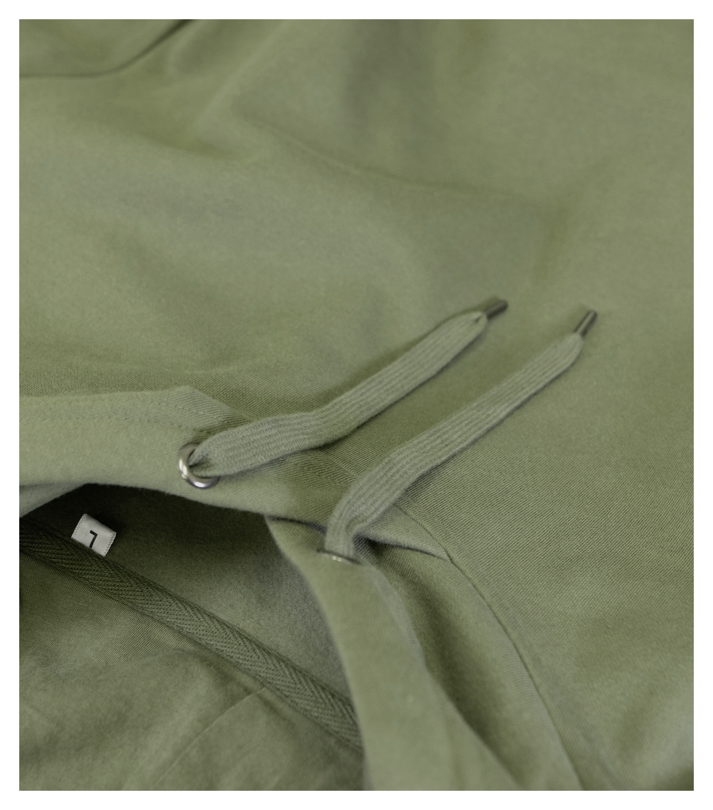 bez etikety - připraveno na rebranding, volný střih s bočními švy, kapuce s podšívkou, na stažení šňůrkou, neutrální velikostní štítek v boční části průkrčníku, vnitřní část průkrčníku začištěna páskou v barvě vrchového materiálu, nízkohlavicové rukávy, lištové kapsy ve stylu klokanky, dolní lem a manžety rukávů z žebrového úpletu 2:2 s 5 % elastanu, vnitřní strana počesaná