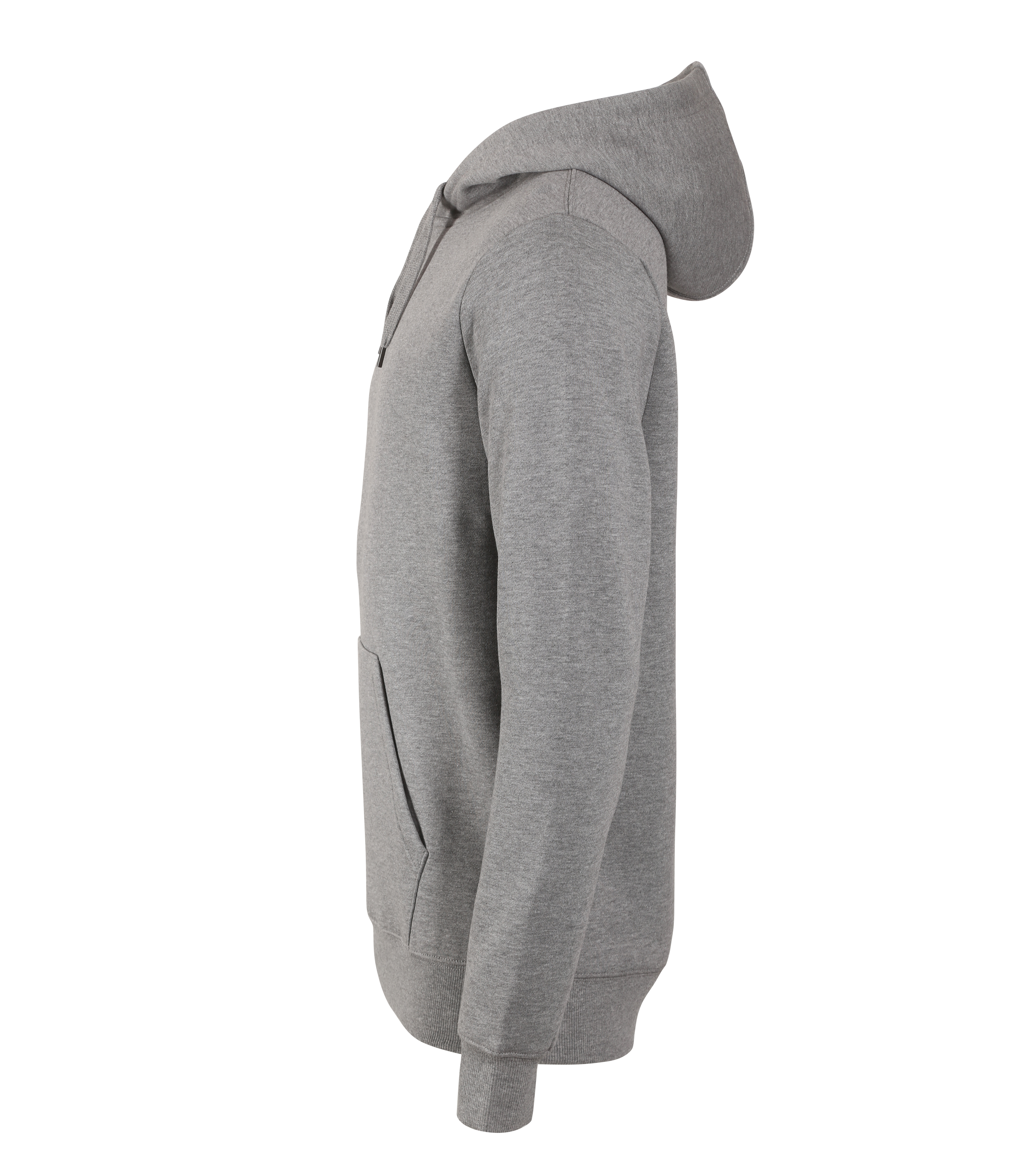 Pánská mikina rovného střihu s bočními švy, kapucí s podšívkou a stahovací šňůrkou a nakládanou kapsou ve stylu klokanky. Vnitřní část průkrčníku je začištěna páskou v barvě vrchového materiálu. Spodní lem a manžety rukávů jsou z žebrového úpletu 2:2 s 5 % elastanu. Vnitřní strana mikiny je počesaná.