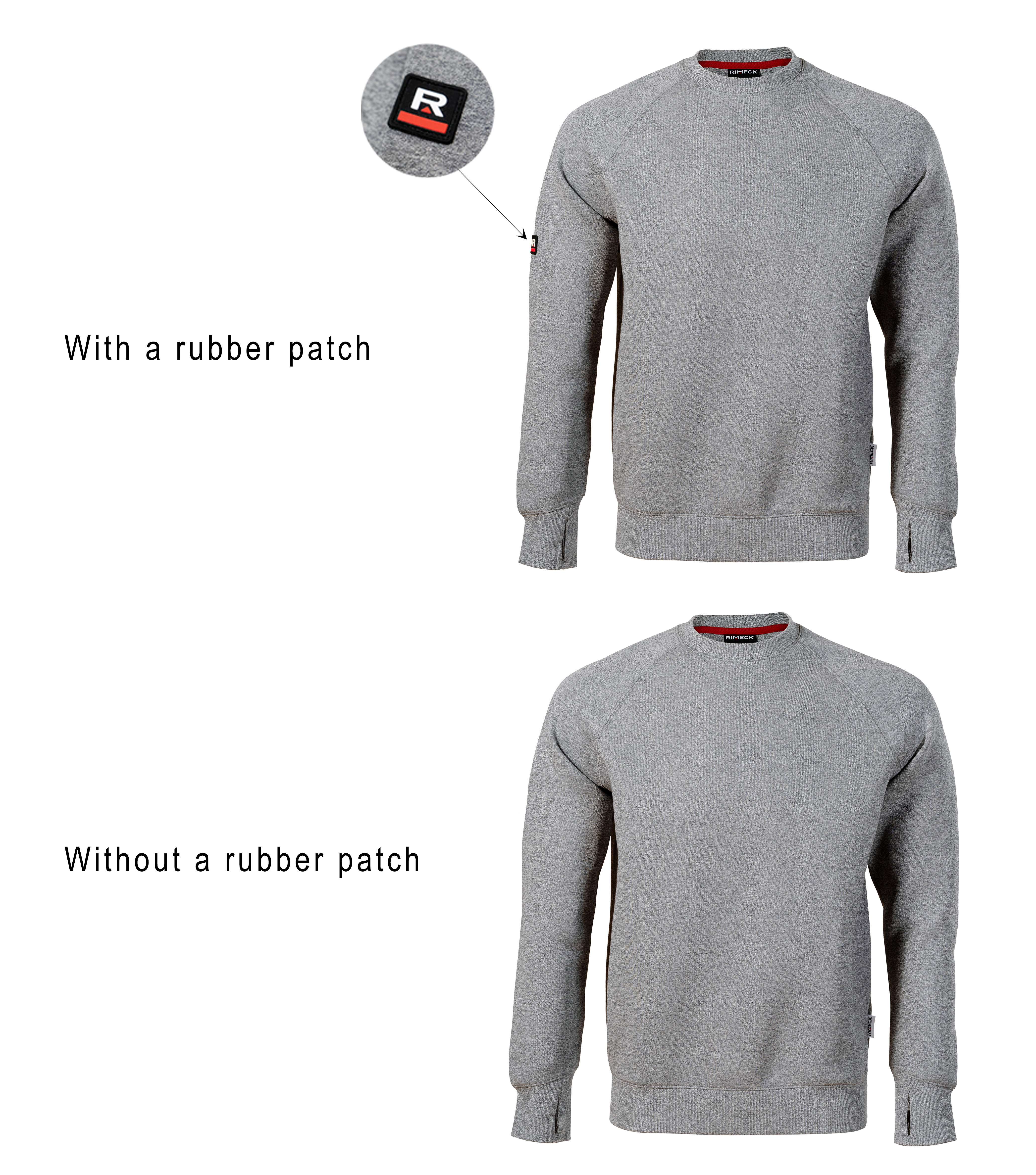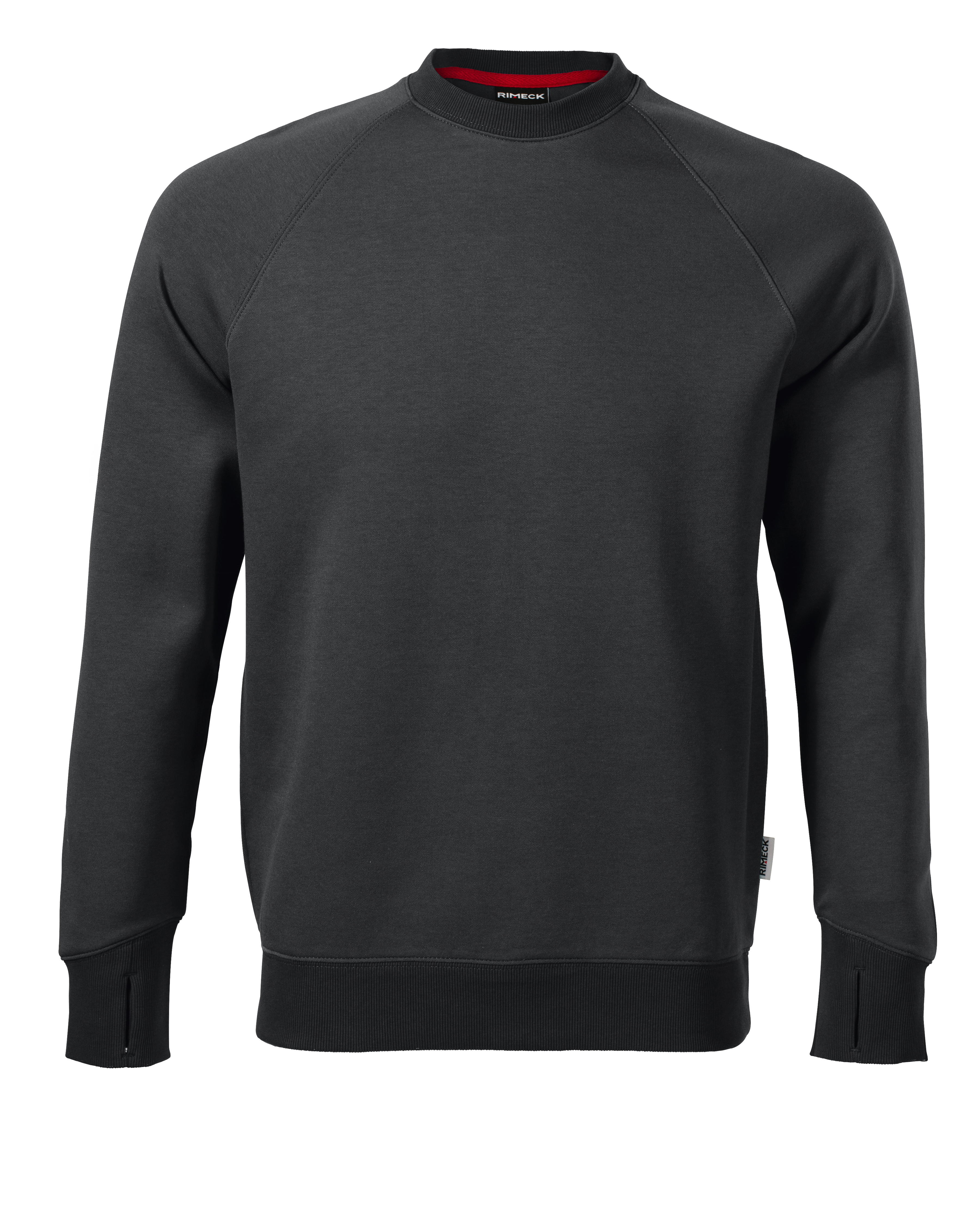 Pánská mikina rovného střihu s bočními švy. Vnitřní část průkrčníku je začištěna kontrastní páskou. Mikina má raglánové rukávy s dvojitým prošitím, dolní lem, manžety a průkrčník z žebrového úpletu 2:2 s 5 % elastanu. Manžety s otvorem pro palec. Kontrastní prvky.