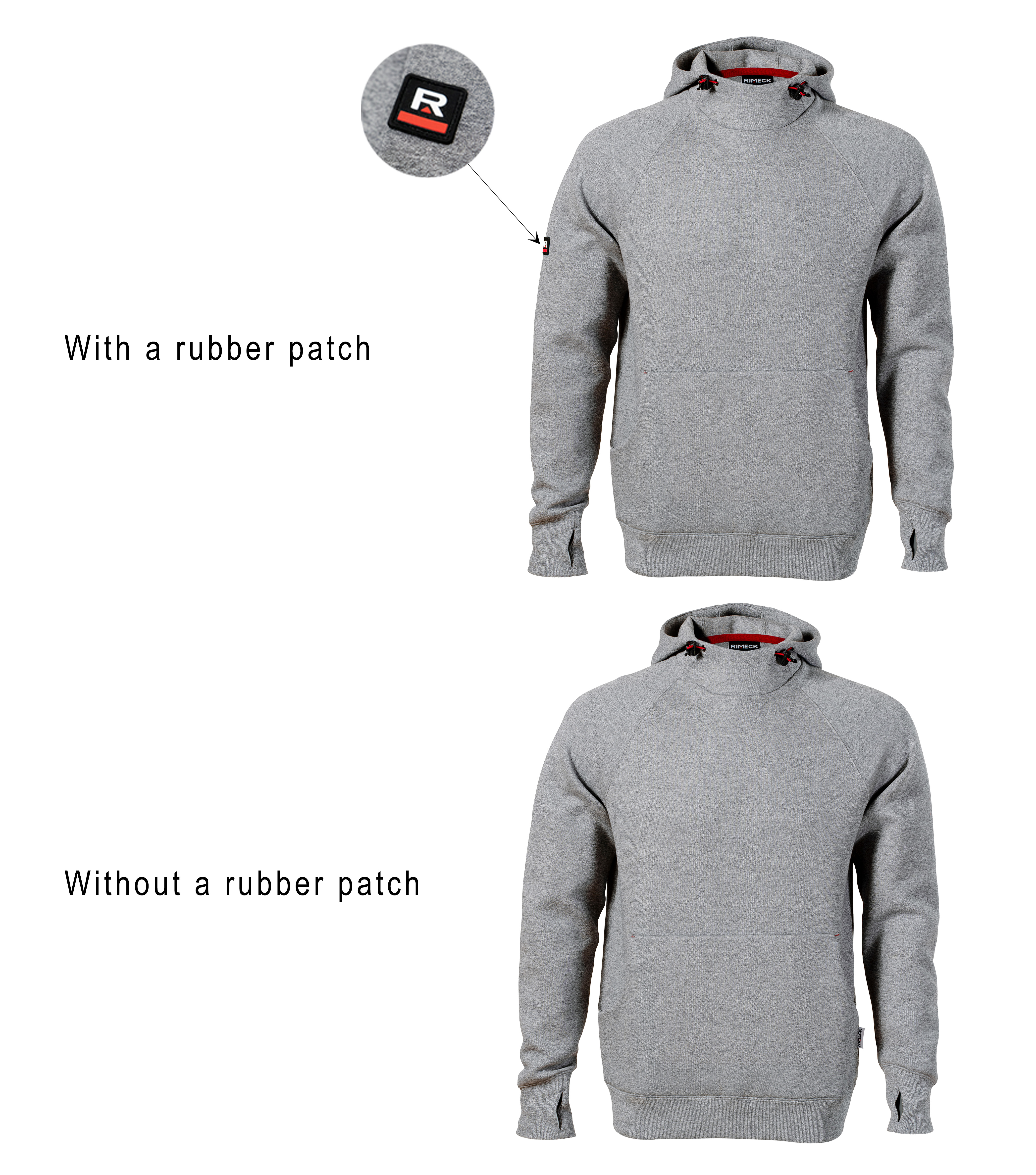 Pánská mikina rovného střihu s bočními švy a kapucí s podšívkou a stahovací elastickou šňůrkou. Vnitřní část průkrčníku je začištěna kontrastní páskou. Mikina má raglánové rukávy s dvojitým prošitím, nakládanou kapsu ve stylu klokanky a 2 skryté kapsy na zip. Dolní lem a manžety rukávů jsou z žebrového úpletu 2:2 s 5 % elastanu. Manžety mají otvor pro palec. Kontrastní prvky.