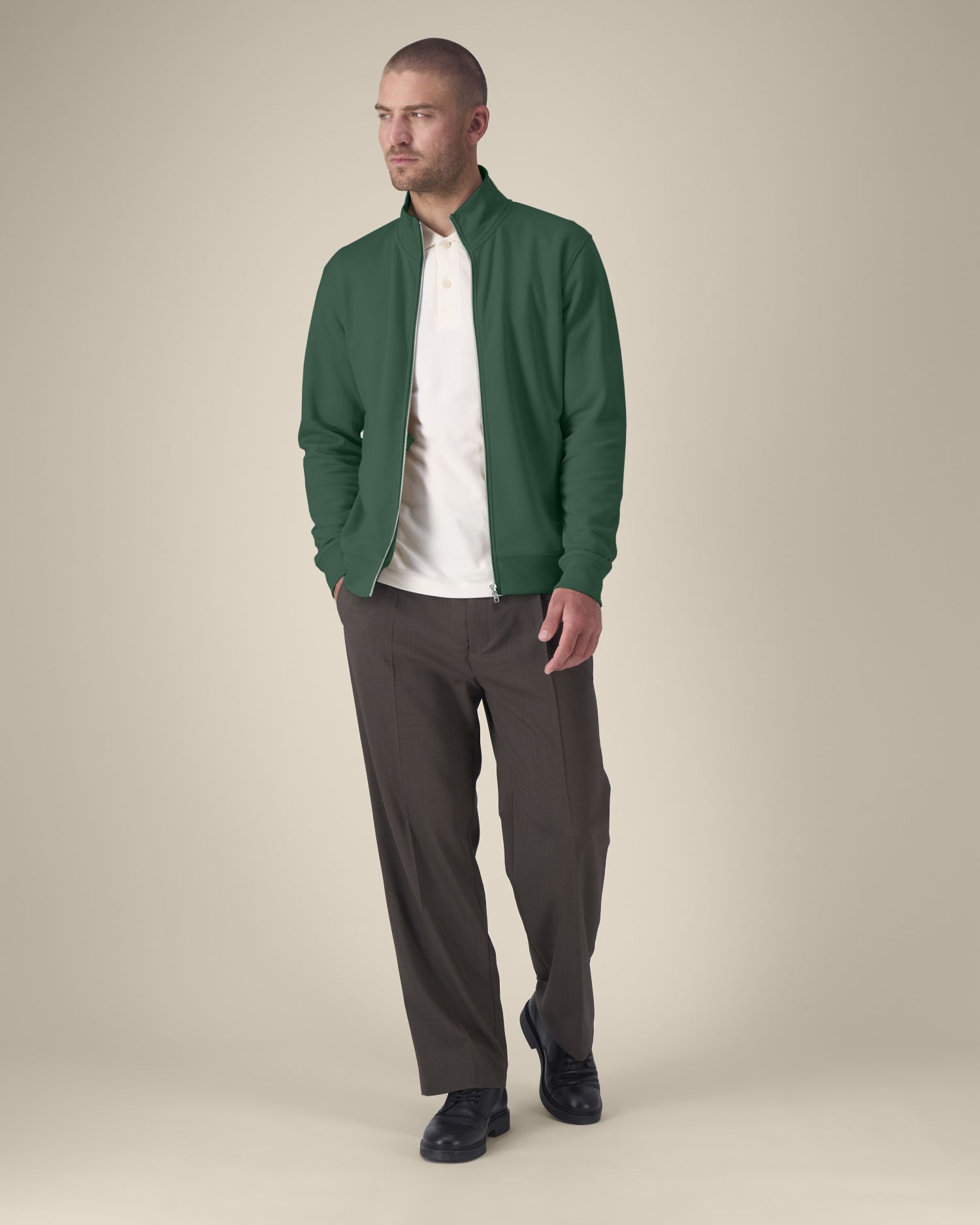 The unisex high neck zip-through sweatshirt