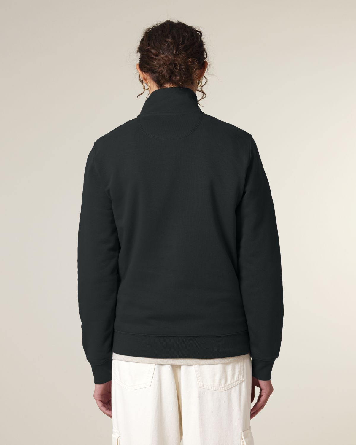 Pánská mikina s 1/4 zipem. Vsazené rukávy. Manžety a spodní lem s žebrováním 1x1. Dvojité stehy v průramcích, spodním lemu a manžetách rukávů.