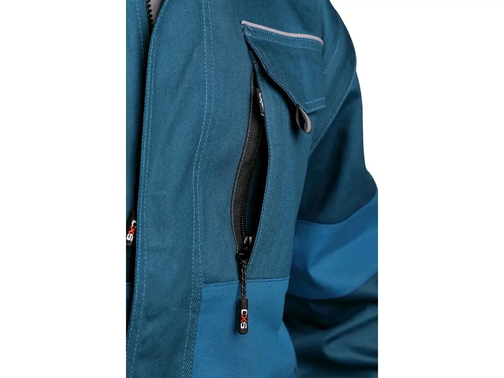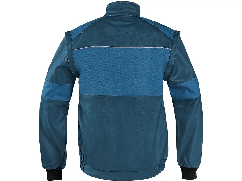 Odolná pánská montérková blůza v petrolové barvě kombinuje pevný materiál s praktickým střihem pro náročné pracovní podmínky ve skladu i na stavbě. Odnímatelné rukávy s elastickými manžetami umožňují rychlou úpravu oděvu a účinně brání vniknutí nečistot k tělu.