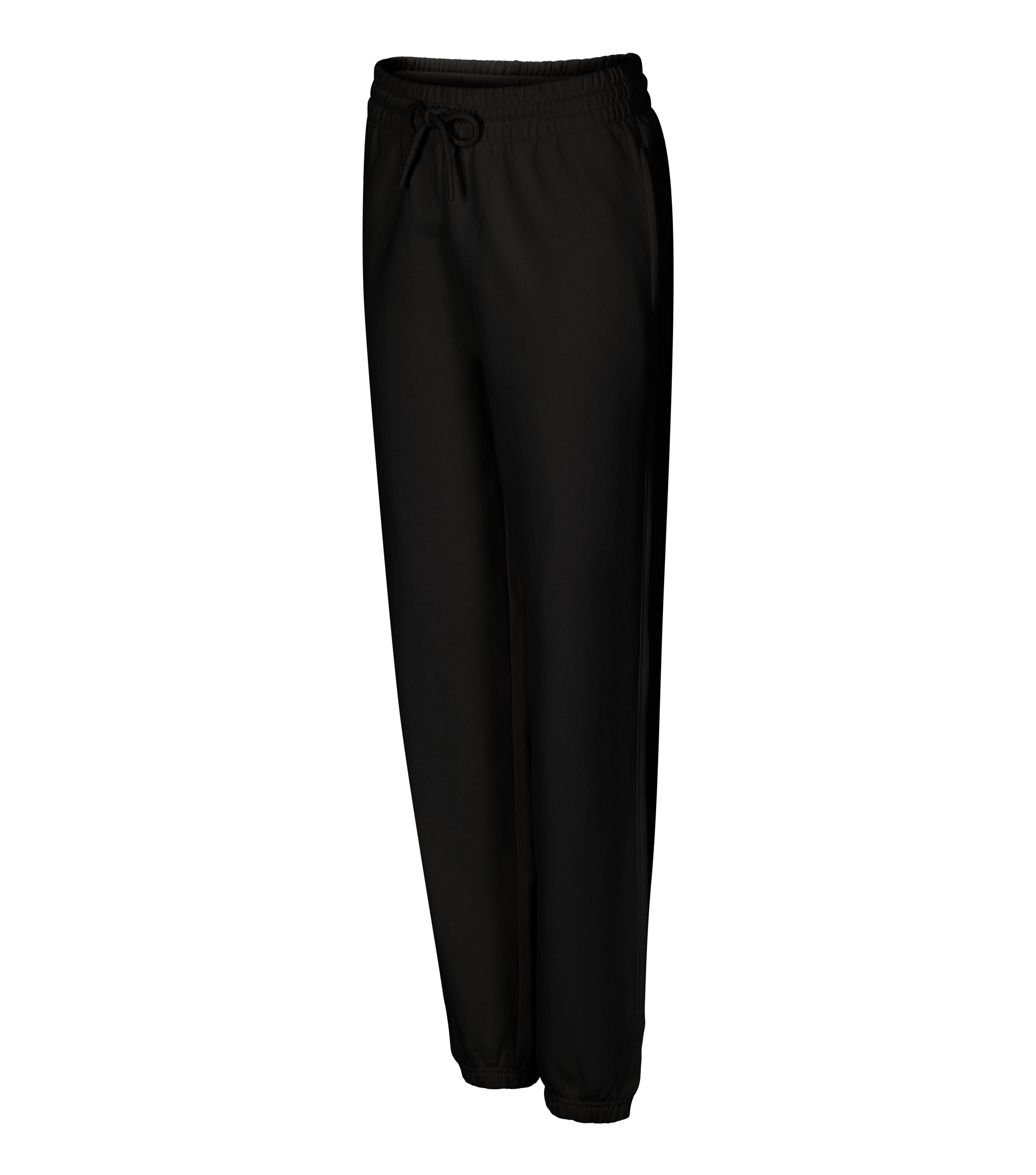 bez etikety - připraveno na rebranding, volnější střih nohavic, neutrální velikostní štítek , pasový límec s pruženkou, na stažení šňůrkou, lištové kapsy v bočních švech, dolní lem stažený pruženkou, vnitřní strana počesaná