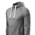 Pánská mikina s kapucí a zapínání na zip v celé délce. Dvouvrstvá kapuce má stahovací šňůrku. Vpředu je našitá klokaní kapsa. Manžety rukávů mají přídavek elastanu. Mikina má lehce projmutý střih.