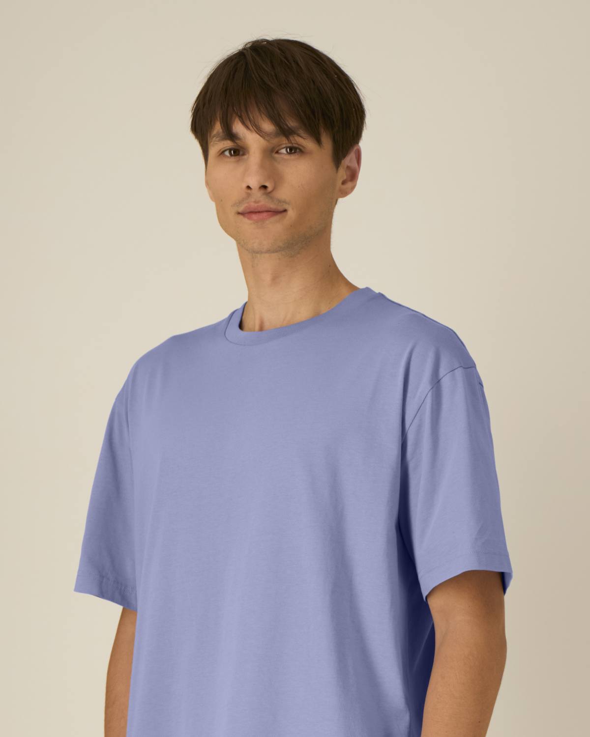Pánské tričko s krátkými vsazenými rukávy. 1X1 žebrování u límce. Vnitřní páska na zadní straně krku ze stejné látky. Dvojité prošívání na manžetách rukávů a spodní lemu.