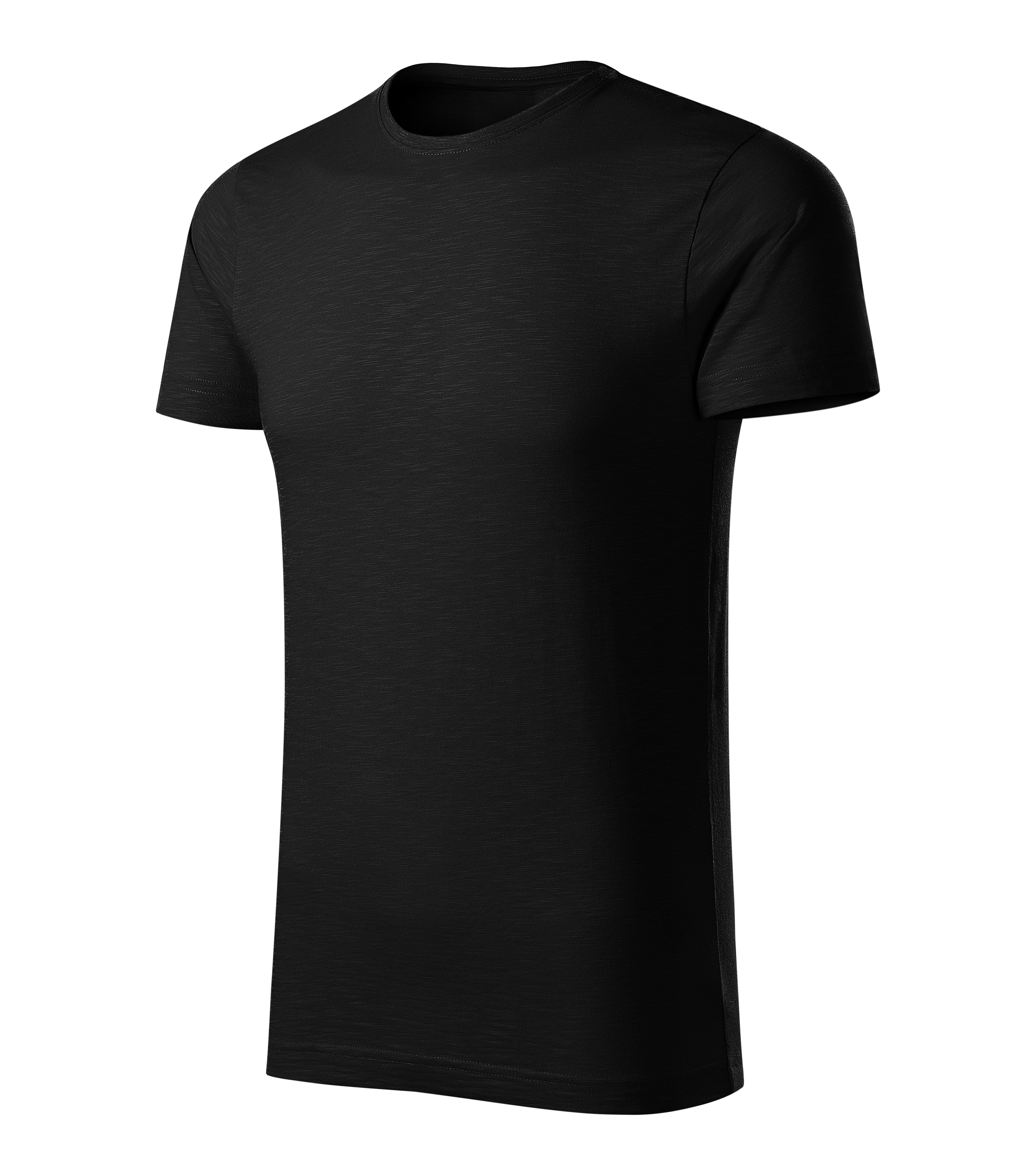 Pánské tričko vyrobené ze strukturované pleteniny slub z certifikované organické bavlny. Tričko má střih s bočními švy, úzký lem průkrčníku z vrchového materiálu s 5 % elastanu a zpevňující pásku od ramene k rameni.