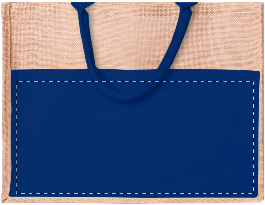 Plážová taška z laminované juty s bavlněnými uchy a přední kapsou.