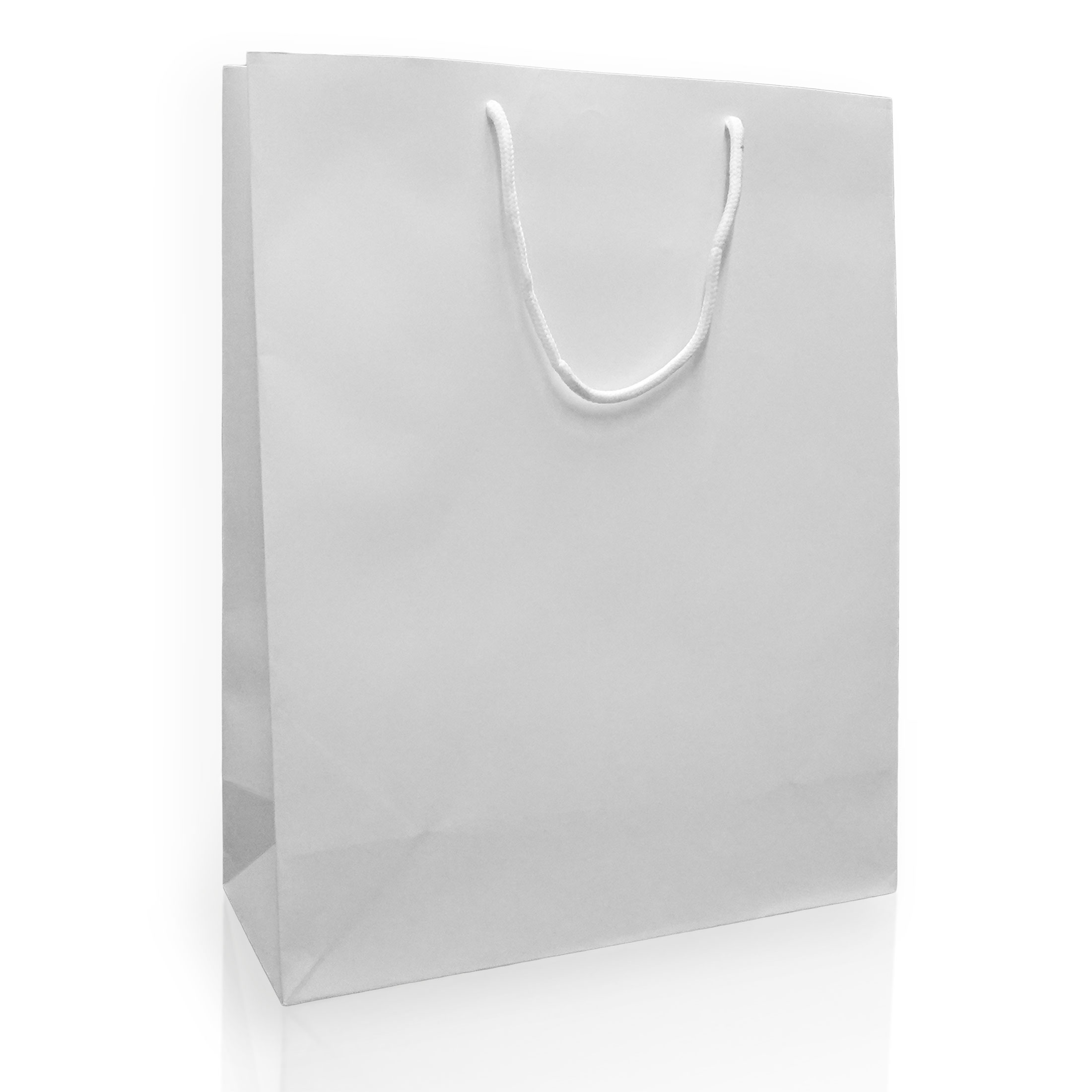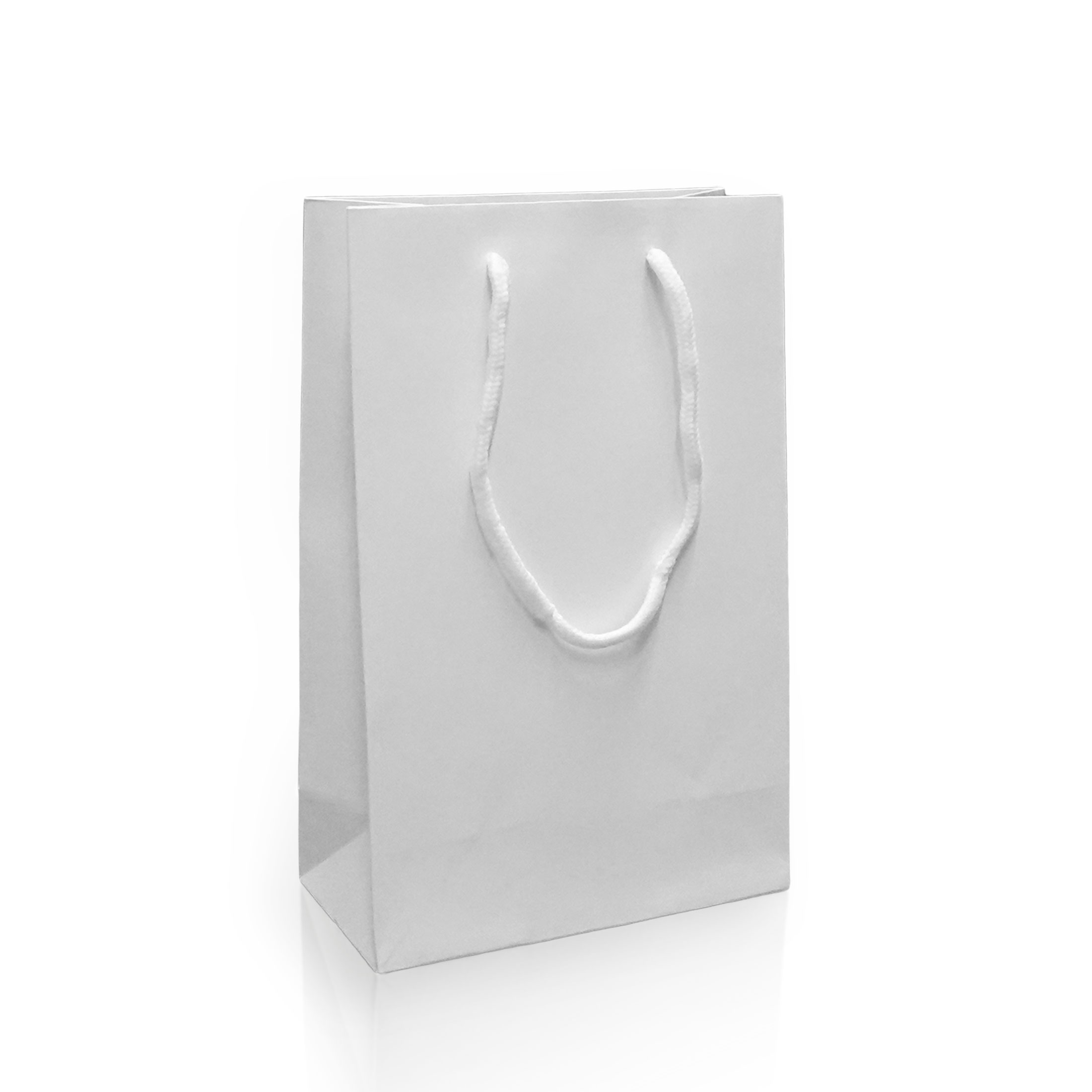 Bílá papírová taška s matnou laminací.