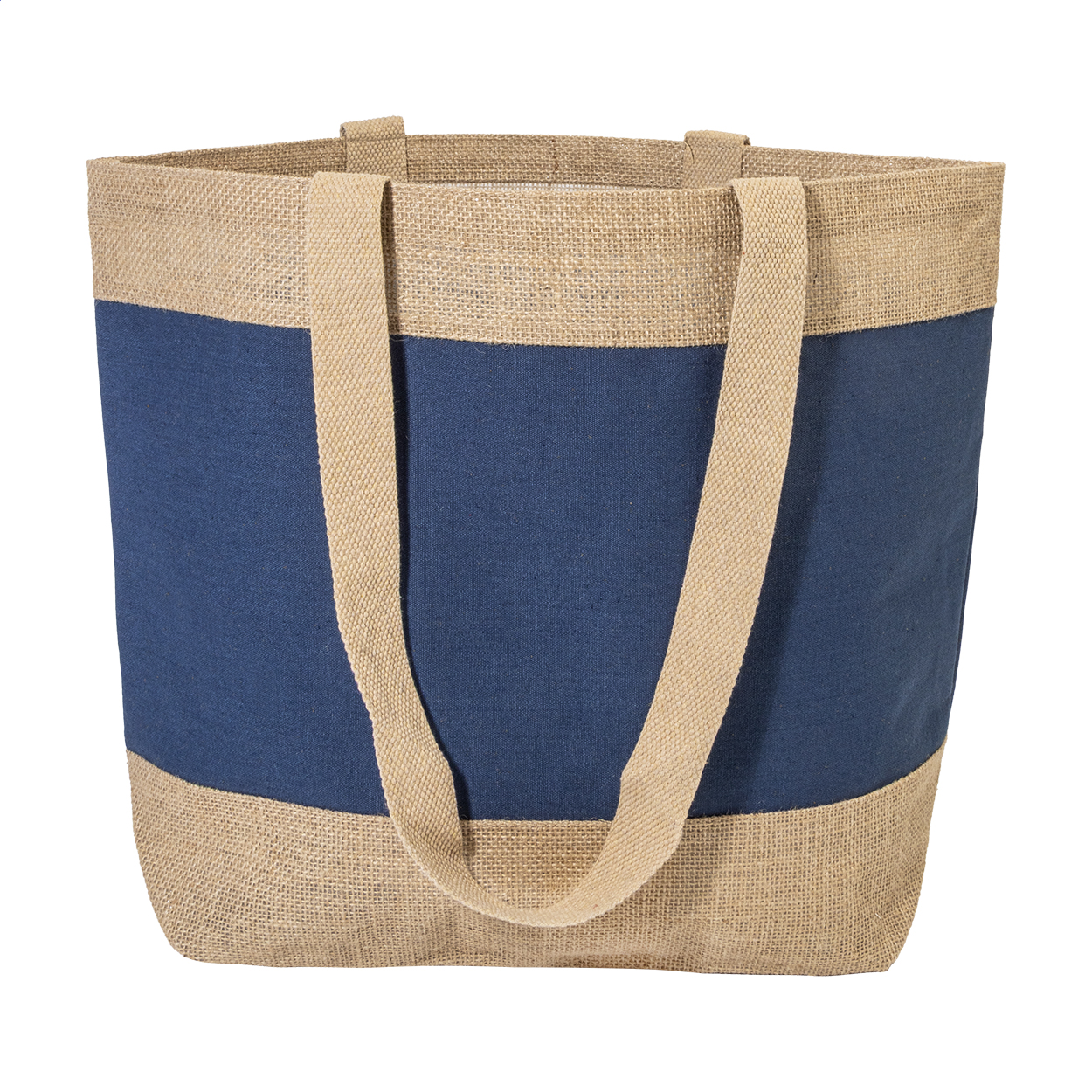 Barevná plážová taška s dlouhými uchy vyrobená z laminované juty a laminované bavlny.