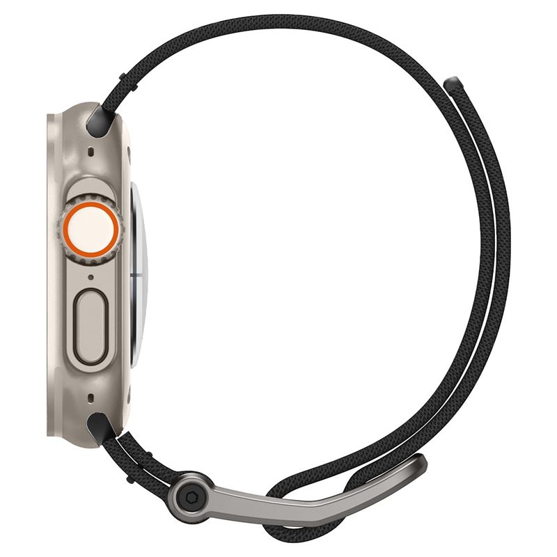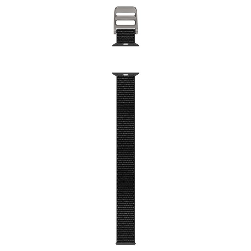 Lehký a prodyšný řemínek z černé nylonové tkaniny poskytuje výjimečný komfort při každodenním používání Apple Watch ve velikostech 49 mm až 42 mm. Kovová přezka zajišťuje spolehlivé upevnění a zvyšuje celkovou odolnost při sportovních aktivitách.