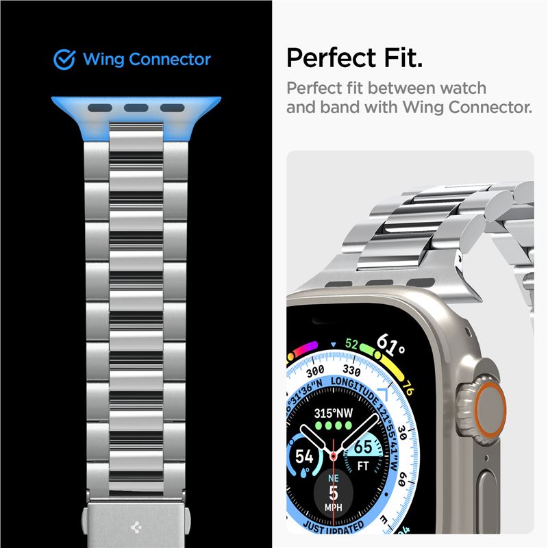Pásek pro Apple Watch Spigen Modern Fit 316L Band, Apple Watch 49mm/46mm/45mm/44mm/42mm - stříbrná
