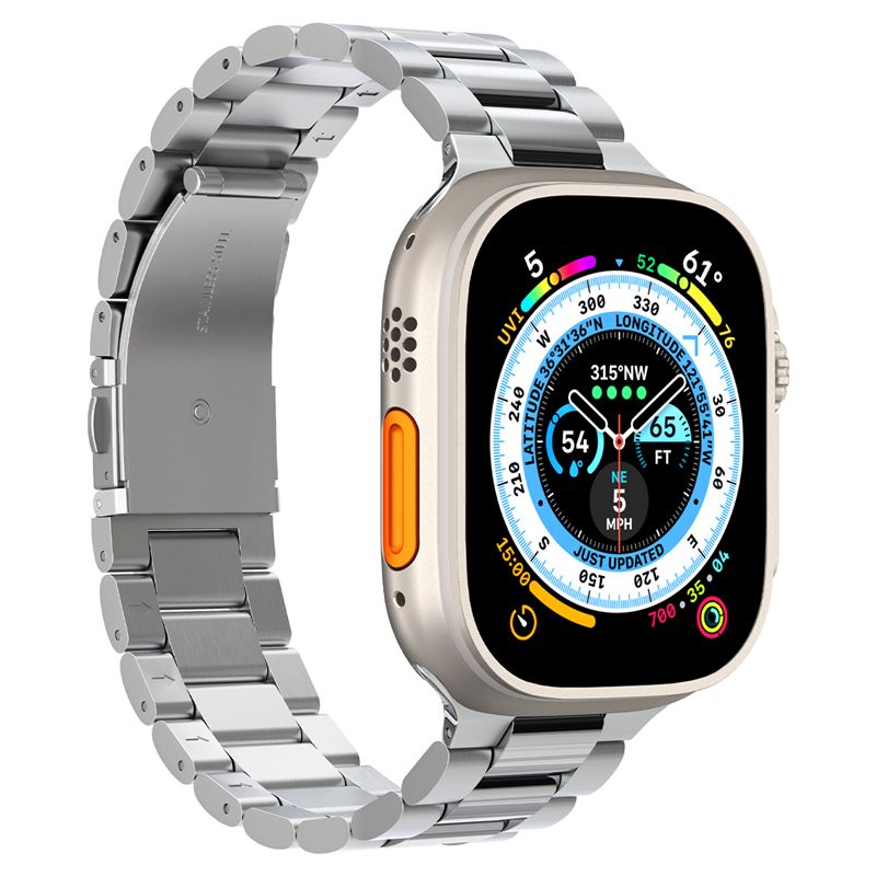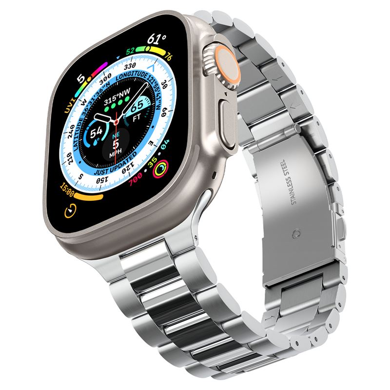Prémiový náramek z ušlechtilé nerezové oceli 316L pasuje k větším modelům Apple Watch o rozměrech 42 mm, 44 mm, 45 mm, 46 mm a 49 mm včetně verze Ultra. Vylepšený zúžený design dodává hodinkám moderní siluetu a vysoká kvalita použitého kovu zajišťuje mimořádnou odolnost proti opotřebení.