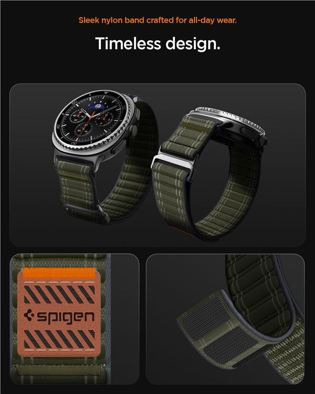 Pásek pro Samsung Galaxy Watch 8 Spigen Fabric Band (hook-and-loop), Samsung Galaxy Watch 8 46mm/44mm/40mm - zelená