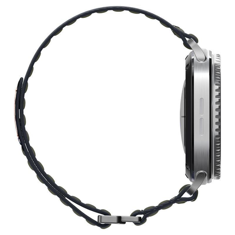 Zelený textilní řemínek představuje spojení lehkosti a odolnosti pro náročné uživatele. Zapínání na suchý zip garantuje pevné uchycení hodinek na zápěstí o obvodu 160 mm až 215 mm a umožňuje snadnou regulaci utažení kdykoliv během dne.