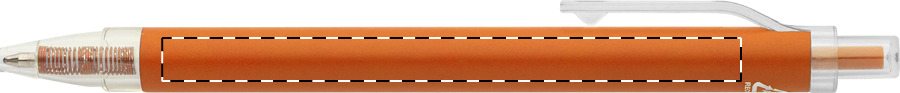 Energická oranžová kuličková propiska vyniká spojením recyklovaného hliníku a matného povrchu. Transparentní komponenty z RPET materiálu dotvářejí unikátní vizuální styl této moderní psací potřeby.