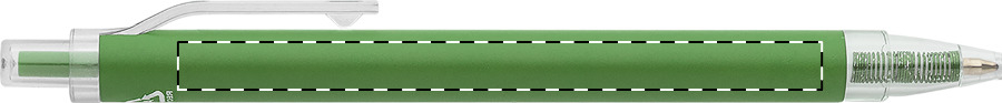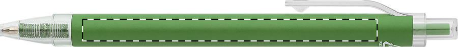 Stylová zelená kuličková propiska s matným tělem z recyklovaného hliníku vyzařuje svěžest a ekologické povědomí. Detaily z průhledného RPET plastu umožňují nahlédnout do vnitřního mechanismu.