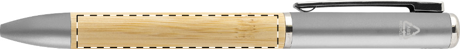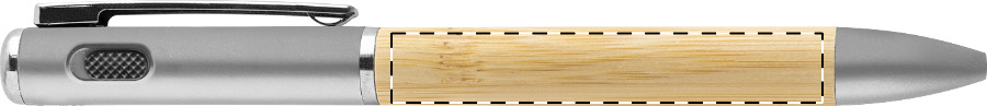 Stříbrné kuličkové pero z udržitelného bambusu a recyklovaného plastu představuje moderní psací potřebu s přidanou hodnotou. Zabudované LED světlo poslouží jako pohotovostní svítilna v nečekaných situacích.