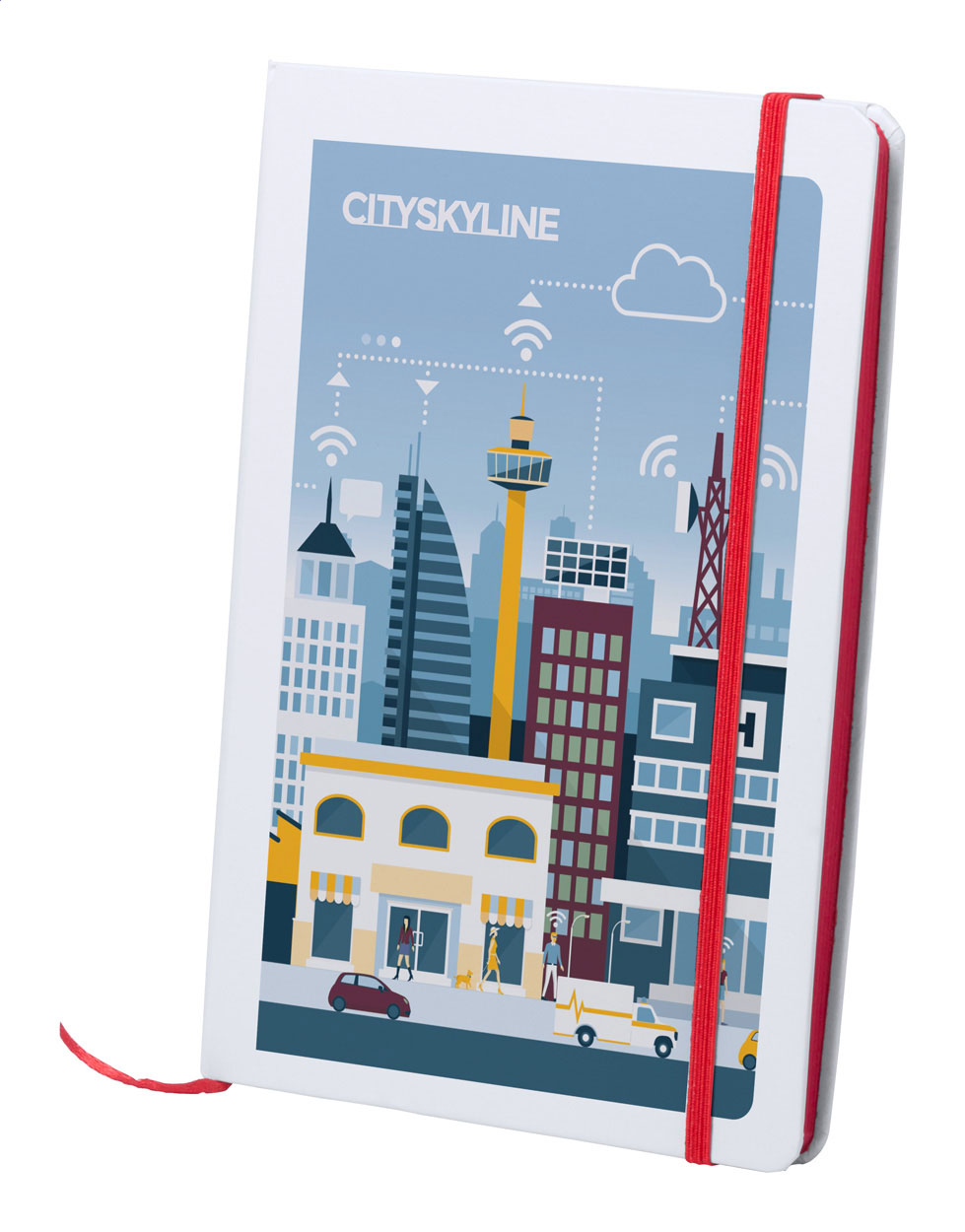 Poznámkový blok se 100 čistými listy v papírových deskách s barevnou gumičkou. Formát A5.