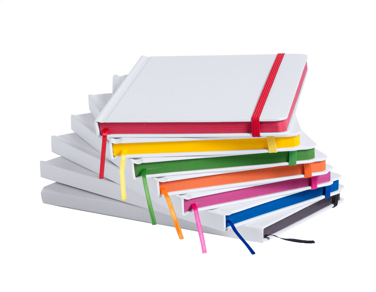 Poznámkový blok se 100 čistými listy v papírových deskách s barevnou gumičkou. Formát A5.