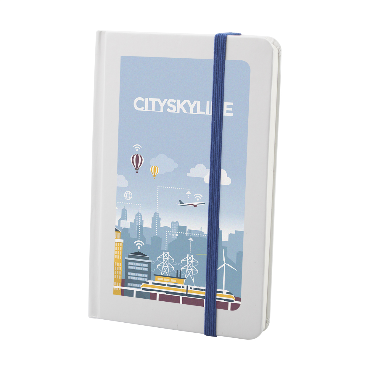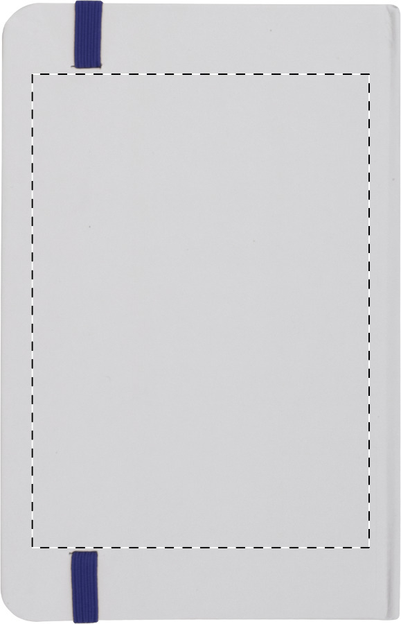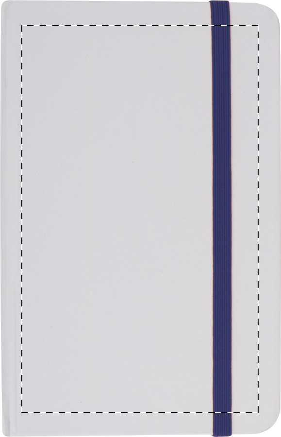 Poznámkový blok s bílými deskami, 80 čistými listy a barevnou gumičkou. Velikost A6.