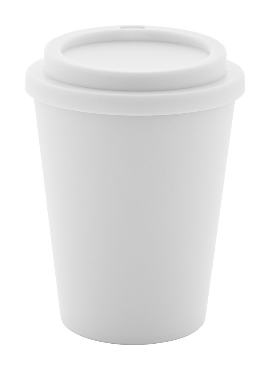 Dvoustěnný termo hrnek izolovaný PP plastem s víčkem na pití. 300 ml.