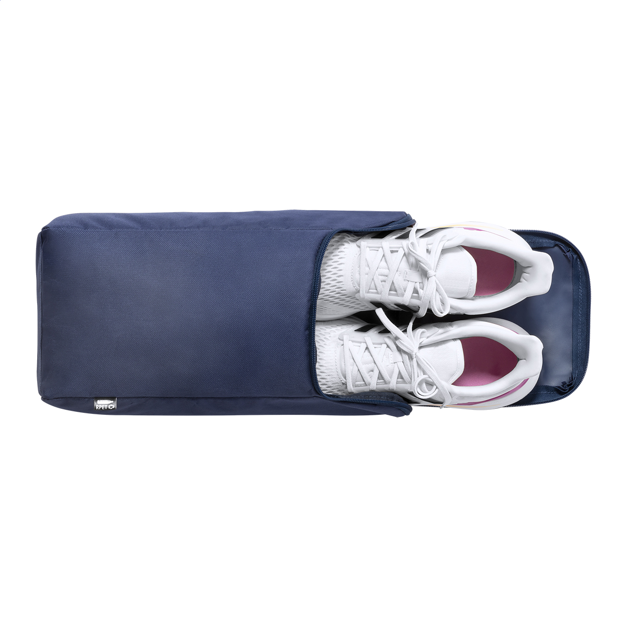 RPET taška na zip pro uložení páru bot. 600D RPET polyester s výrazným štítkem RPET.