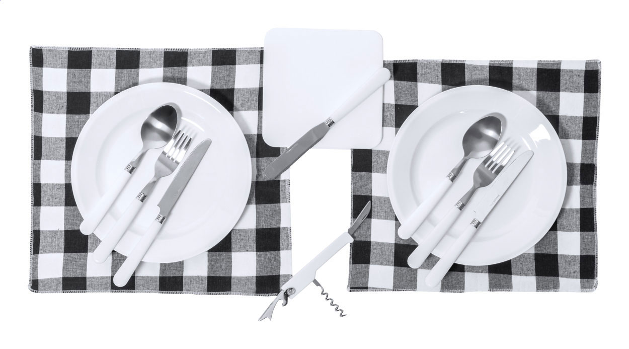 13dílná pikniková sada nádobí a příborů pro 2 osoby v přepravním kufříku z polyesteru 600D RPET na zip.