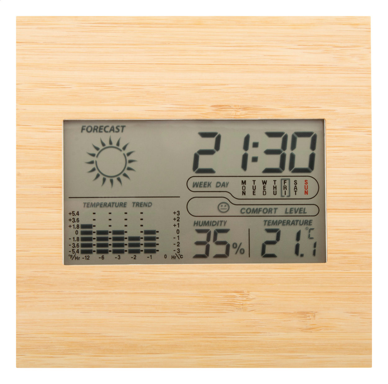 Plastová domácí meteostanice BOOCAST s bambusovým panelem - přírodní