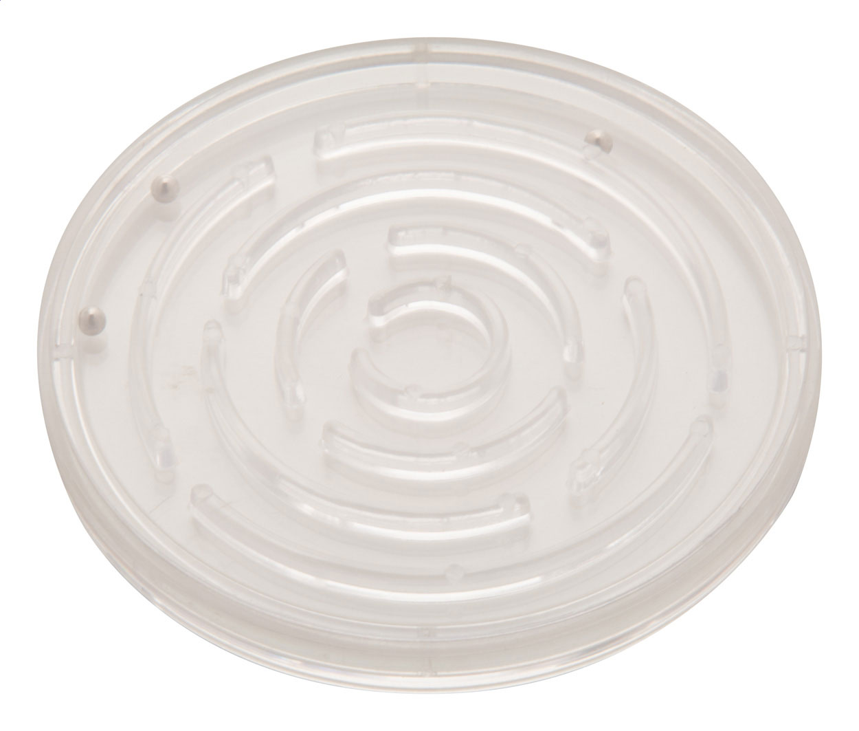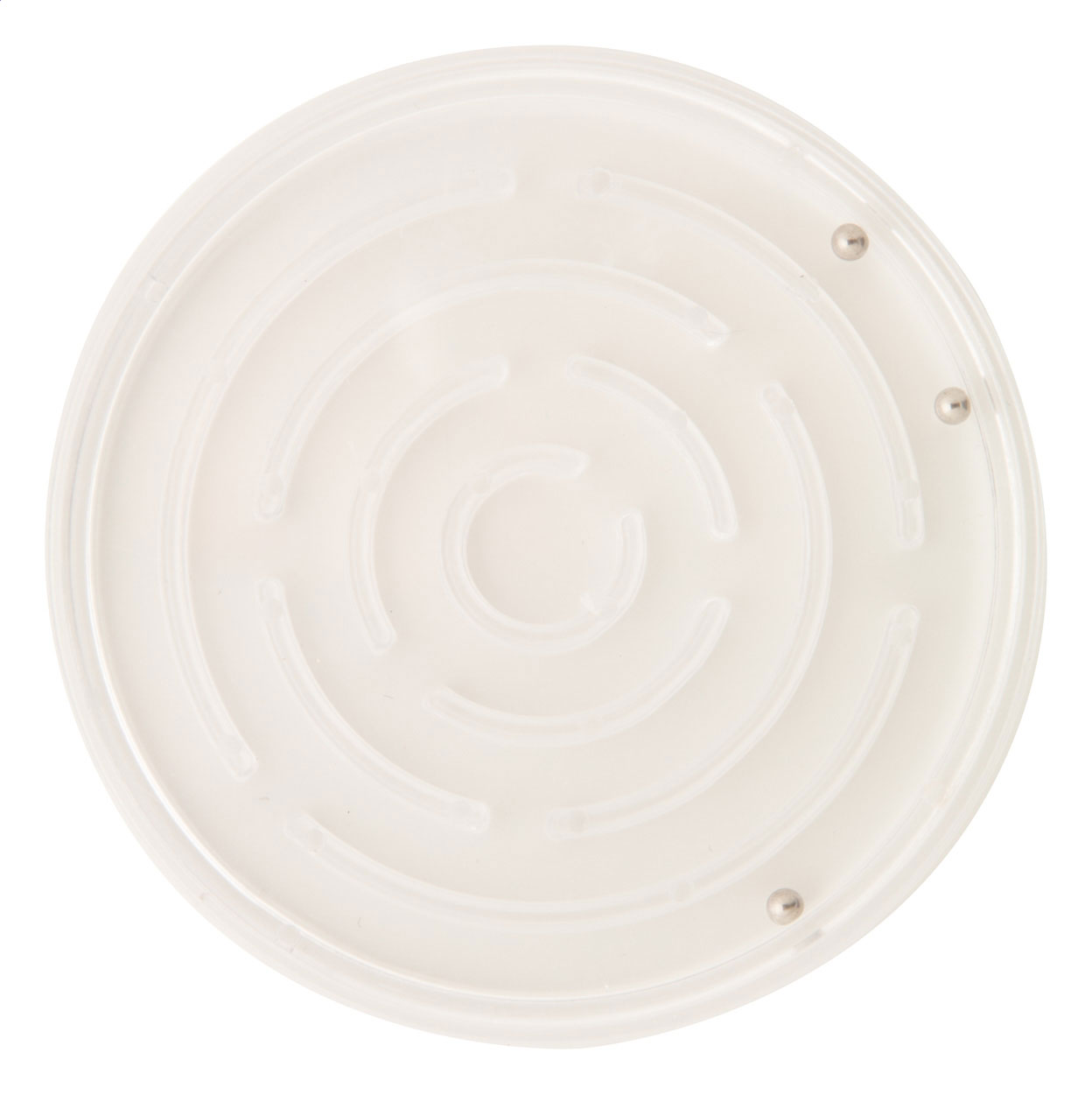 Plastové kulaté bludiště se 3 kovovými kuličkami. S plnobarevným vloženým papírem uvnitř. Cena zahrnuje digitální tisk na obou stranách, nezahrnuje tiskovou přípravu. Minimální množství pro objednávku: 100 ks.