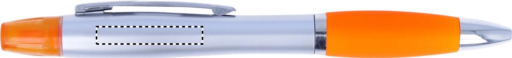 Kuličkové pero 2v1 s modrým inkoustem a se zvýrazňovačem. Pero je v matném stříbrném provedení s chromovaným kováním.
