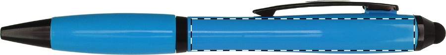 Plastové kuličkové pero se stylusem pro ovládání dotykových displejů. Pero má barevné tělo s černými prvky. Modrá náplň. Mechanismus: otočný. Certifikace Twist action.