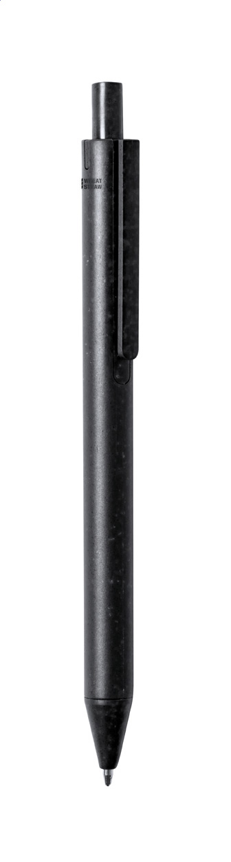 Ekologické plastové kuličkové pero z pšeničné slámy s modrou náplní. Mechanismus: tlačítkový. Certifikace Push action.