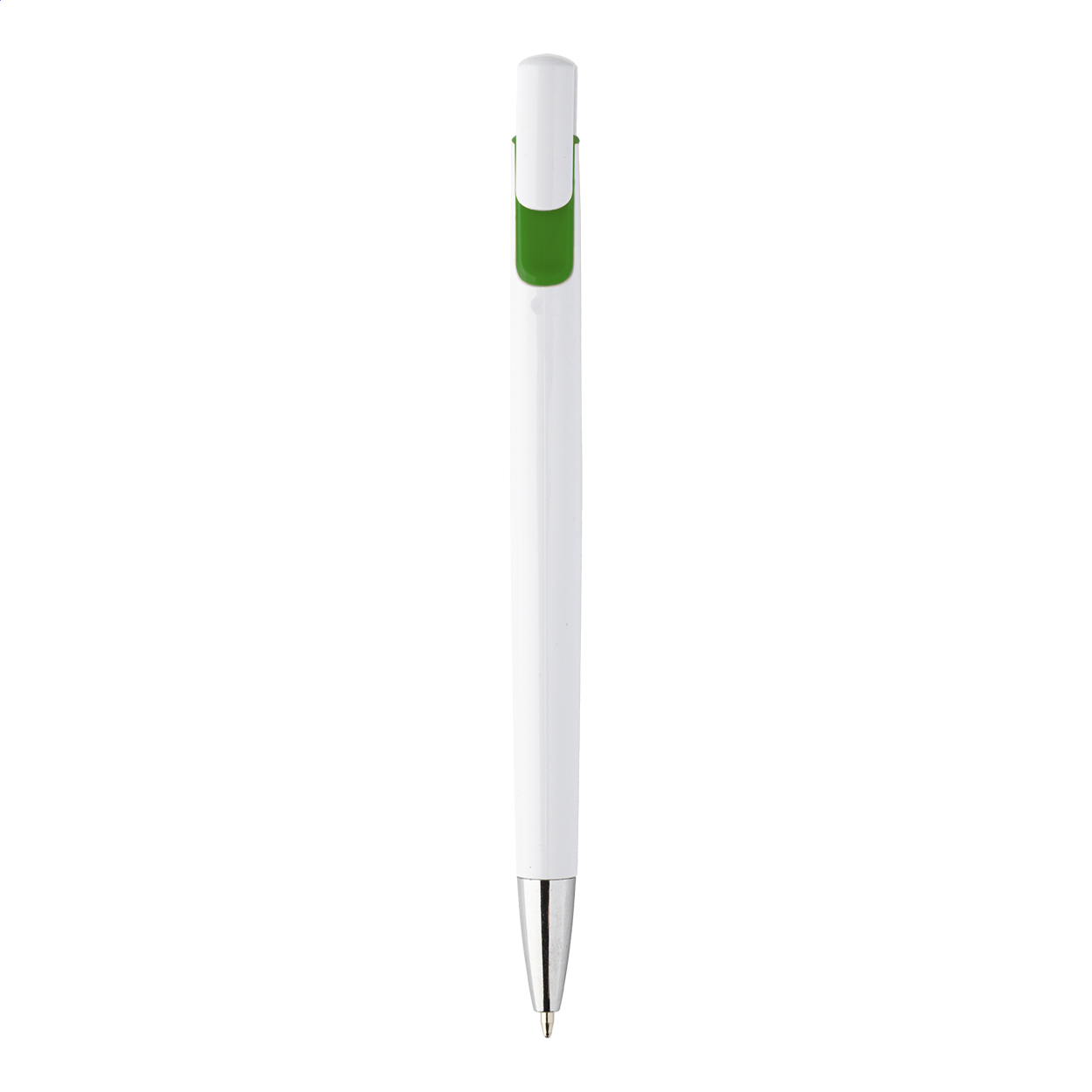 Plastové kuličkové pero s barevnými doplňky a chromovou špičkou. Dodáváno s modrou náplní. Mechanismus: tlačítkový. Certifikace Push action.