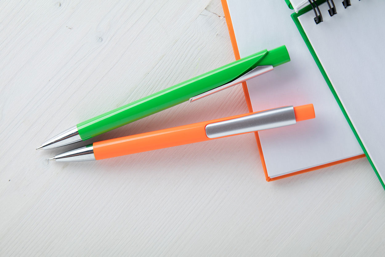 Plastové kuličkové pero se stříbrným klipem a chromovou špičkou. Modrá náplň. Mechanismus: tlačítkový. Certifikace Push action.