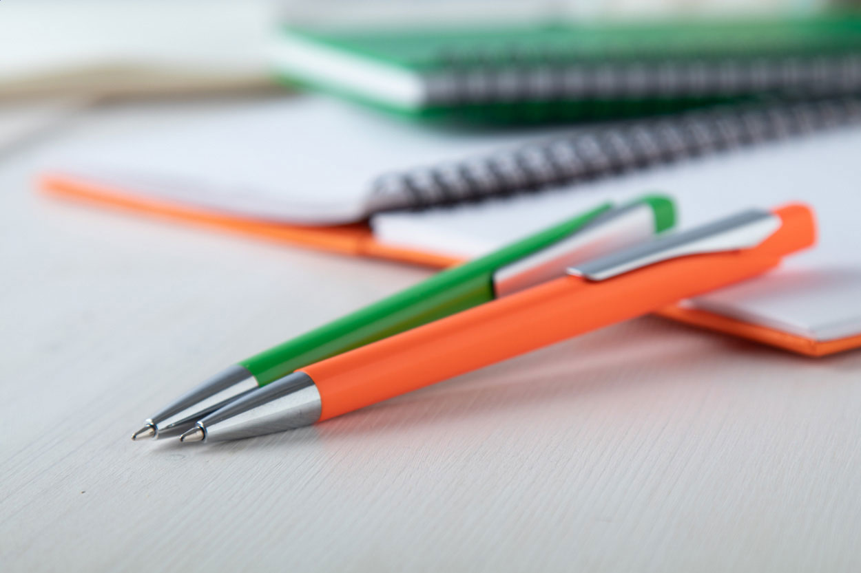 Plastové kuličkové pero se stříbrným klipem a chromovou špičkou. Modrá náplň. Mechanismus: tlačítkový. Certifikace Push action.