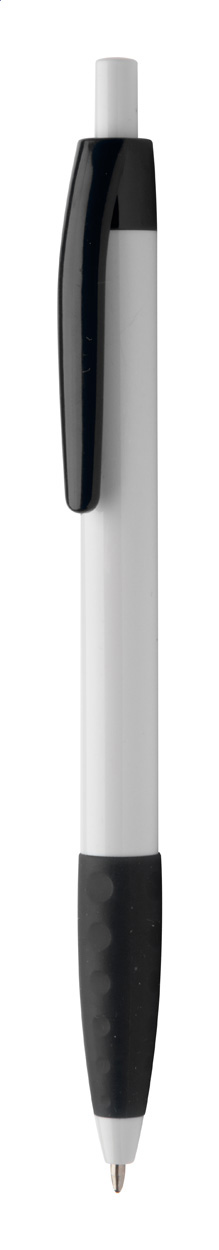 Plastové kuličkové pero s barevným gumovým úchopem a modrou náplní. Mechanismus: tlačítkový. Certifikace Push action.