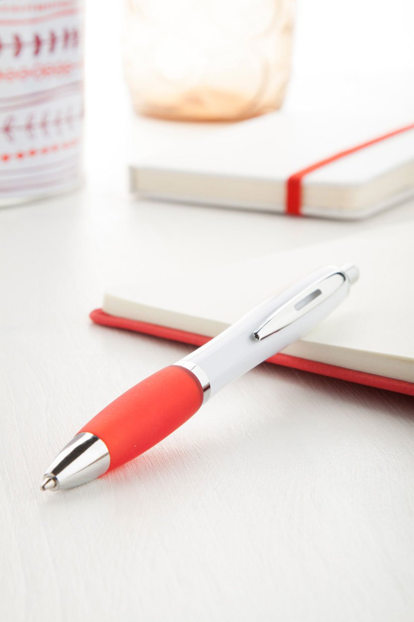 Plastové kuličkové pero WUMPY s barevným úchopem - červená / bílá