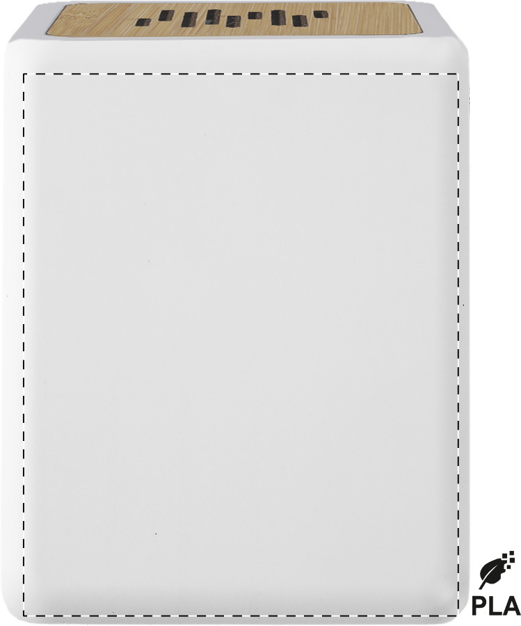 Ekologický bezdrátový reproduktor v bílo-přírodní kombinaci spojuje moderní technologie s udržitelným přístupem k přírodě. Pouzdro z pravého bambusu a bioplastu vytváří stylový doplněk do interiéru, přičemž veškeré plastové části tvoří stoprocentně kompostovatelný materiál PLA.