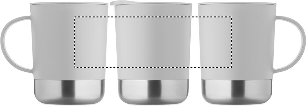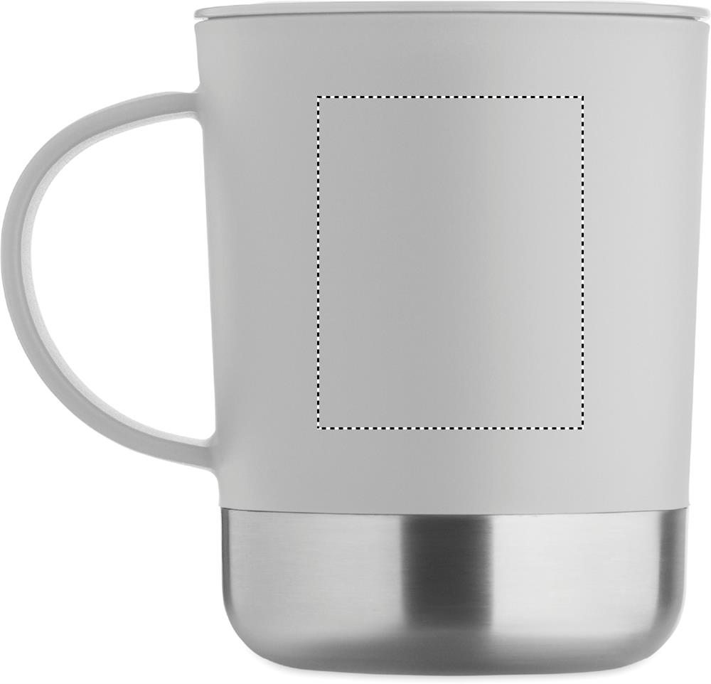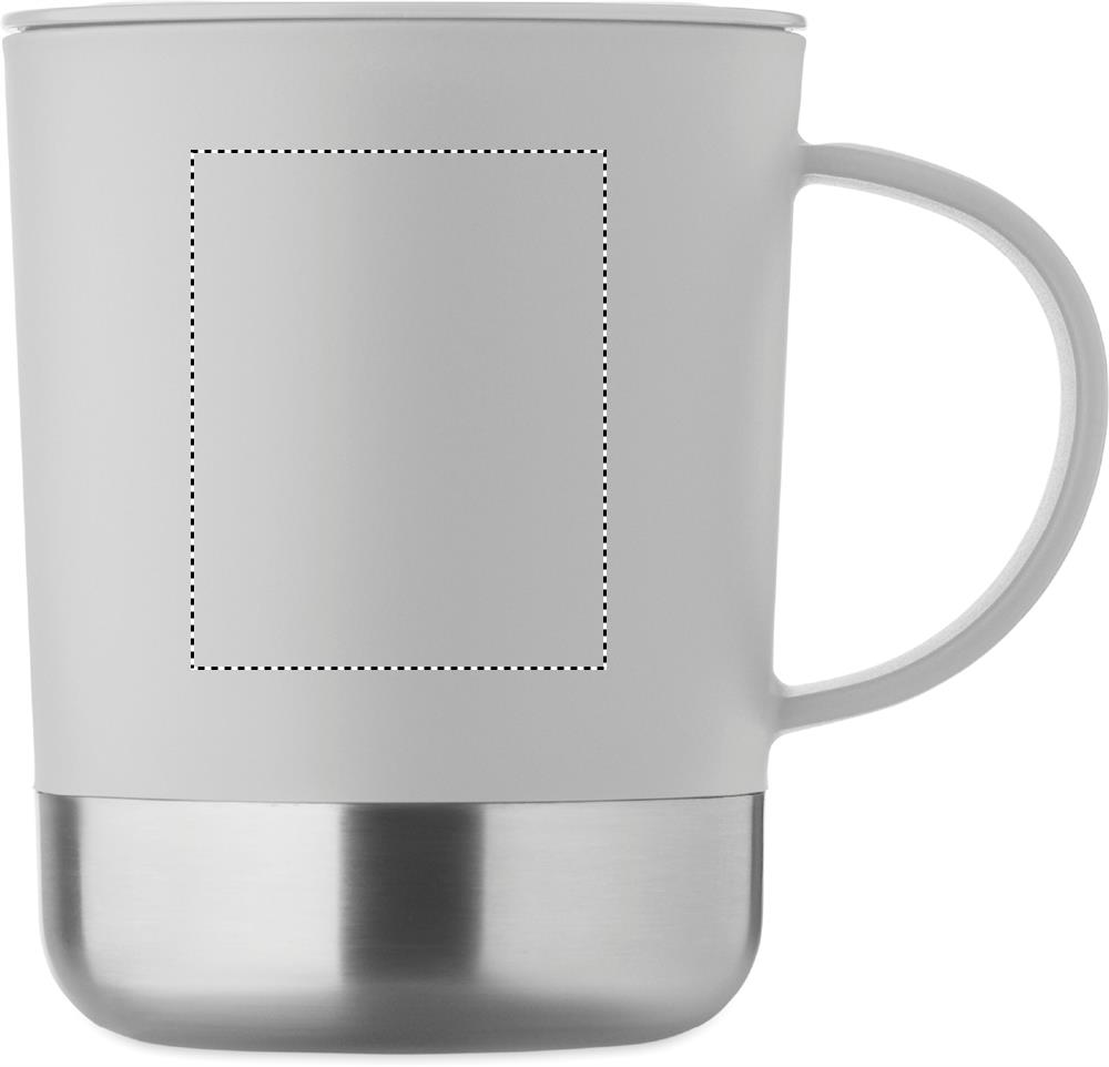 Jednostěnný hrnek z PP s nerezovým dnem (90 % recyklované nerezové oceli a 10 % nerezové oceli) a víčkem z PP. Objem: 300 ml.