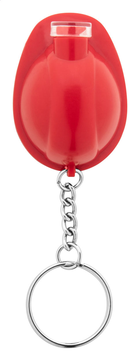 Plastový přívěsek na klíče ve tvaru přilby s LED svítilnou. Dodáváno s knoflíkovou baterií.