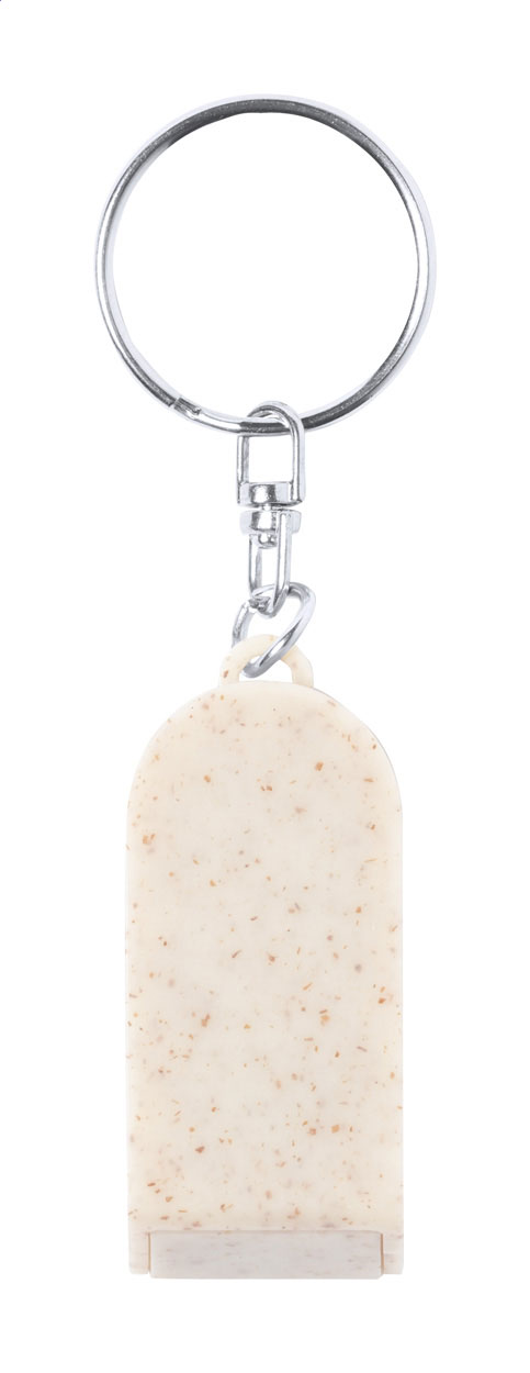 Ekologický plastový držák na mobil z pšeničné slámy s čističem obrazovek a kovovým kroužkem na klíče.