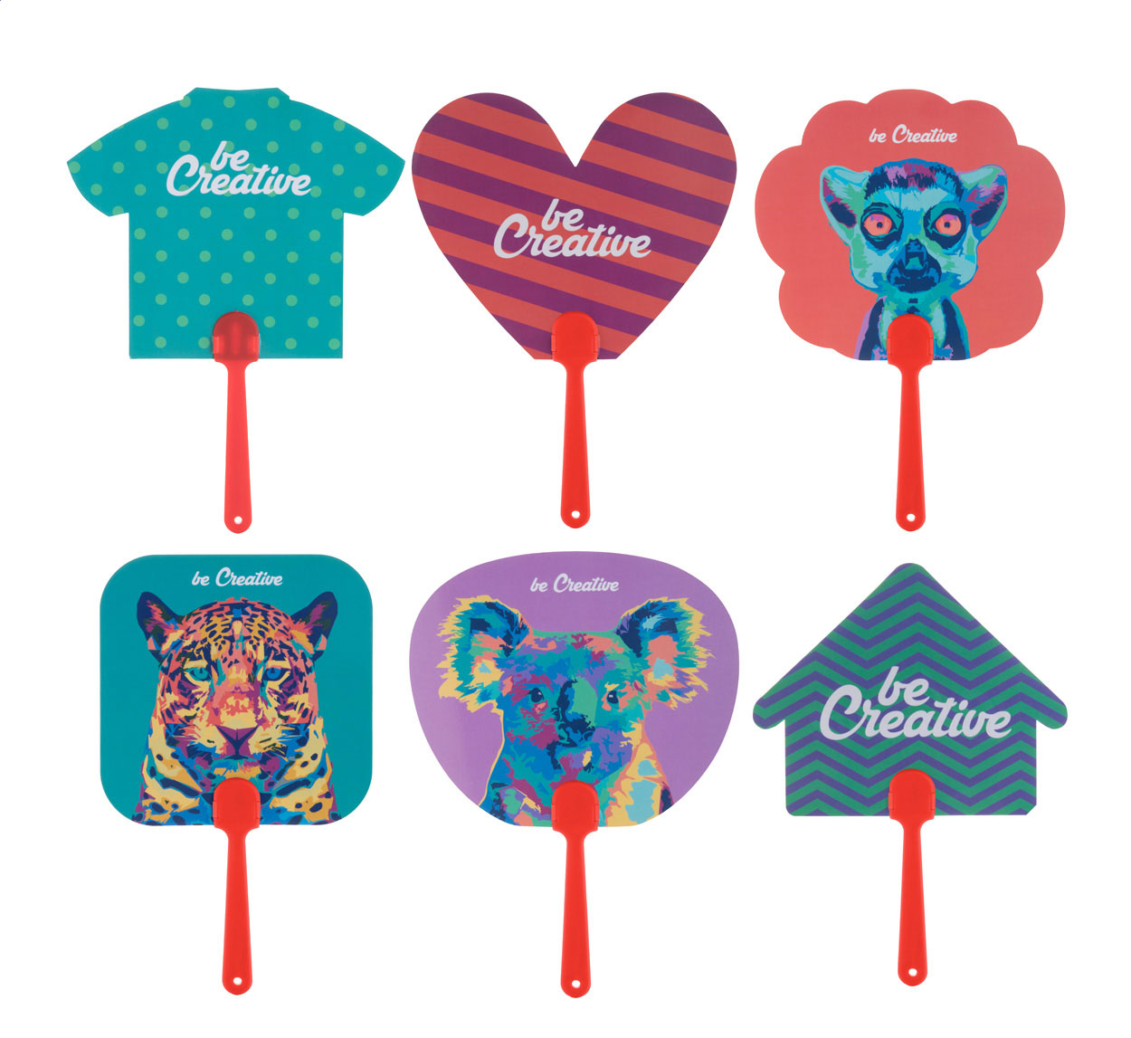 Zakázkový vějíř s plastovým držadlem a laminovaným papírem. Cena zahrnuje digitální tisk s vaší grafikou na obou stranách, nezahrnuje tiskovou přípravu. Minimální množství pro objednávku: 100 ks.