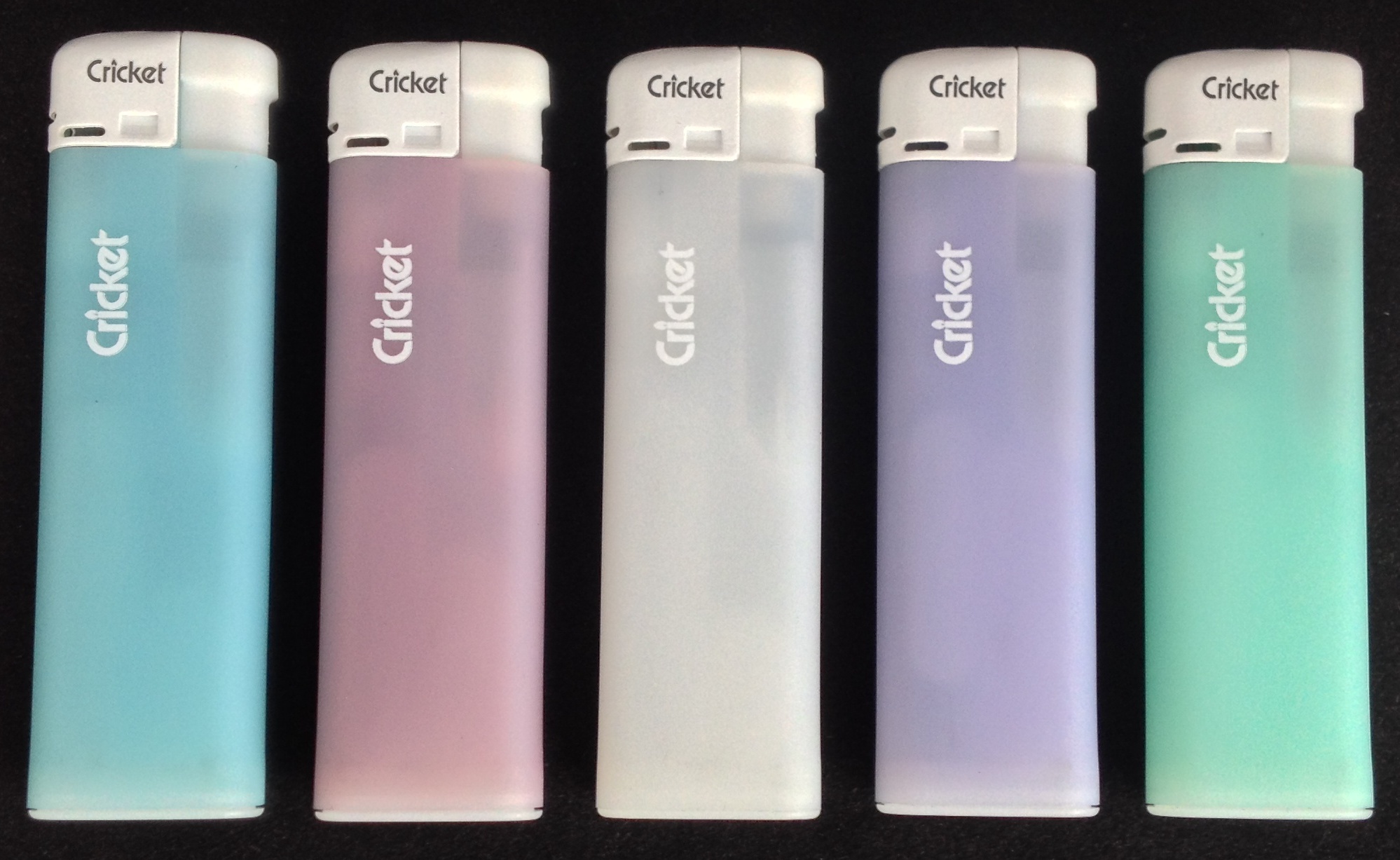 Elektronický plastový plynový zapalovač Cricket s mléčně transparentím tělem. Rozměry: 23x80x10 mm. Standardní balení: 50 kusů/tray. Přepravní karton: 500 ks.