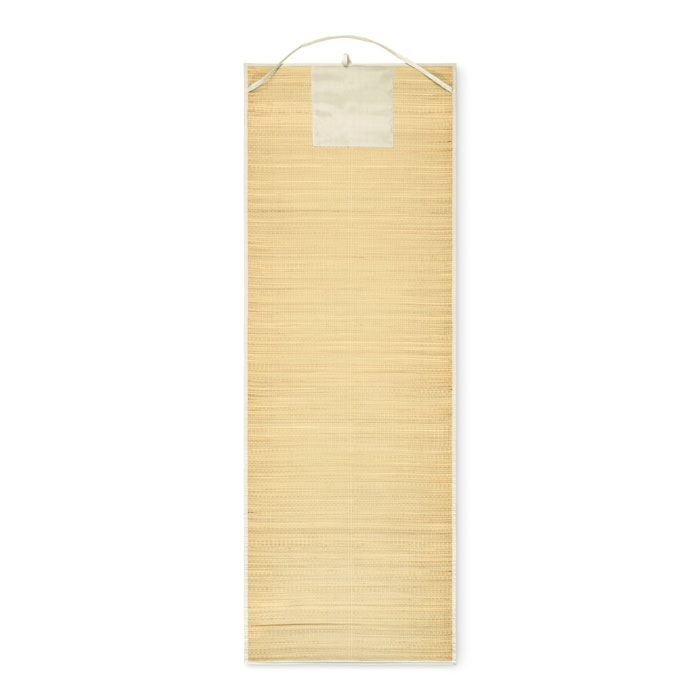 Plážová rohož z přírodní slámy s polyesterovým popruhem na nošení.