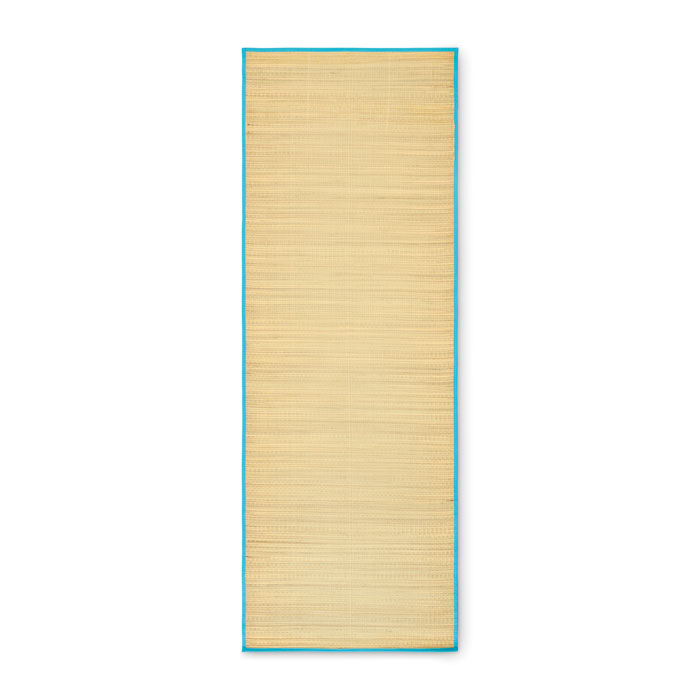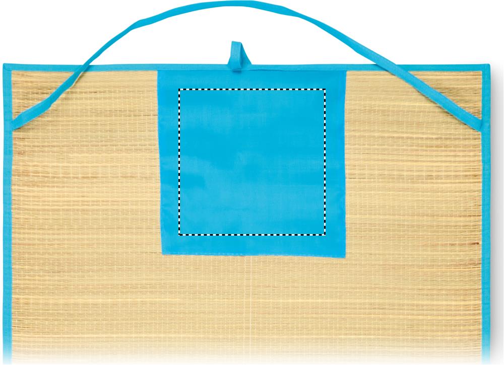Plážová rohož z přírodní slámy s polyesterovým popruhem na nošení.