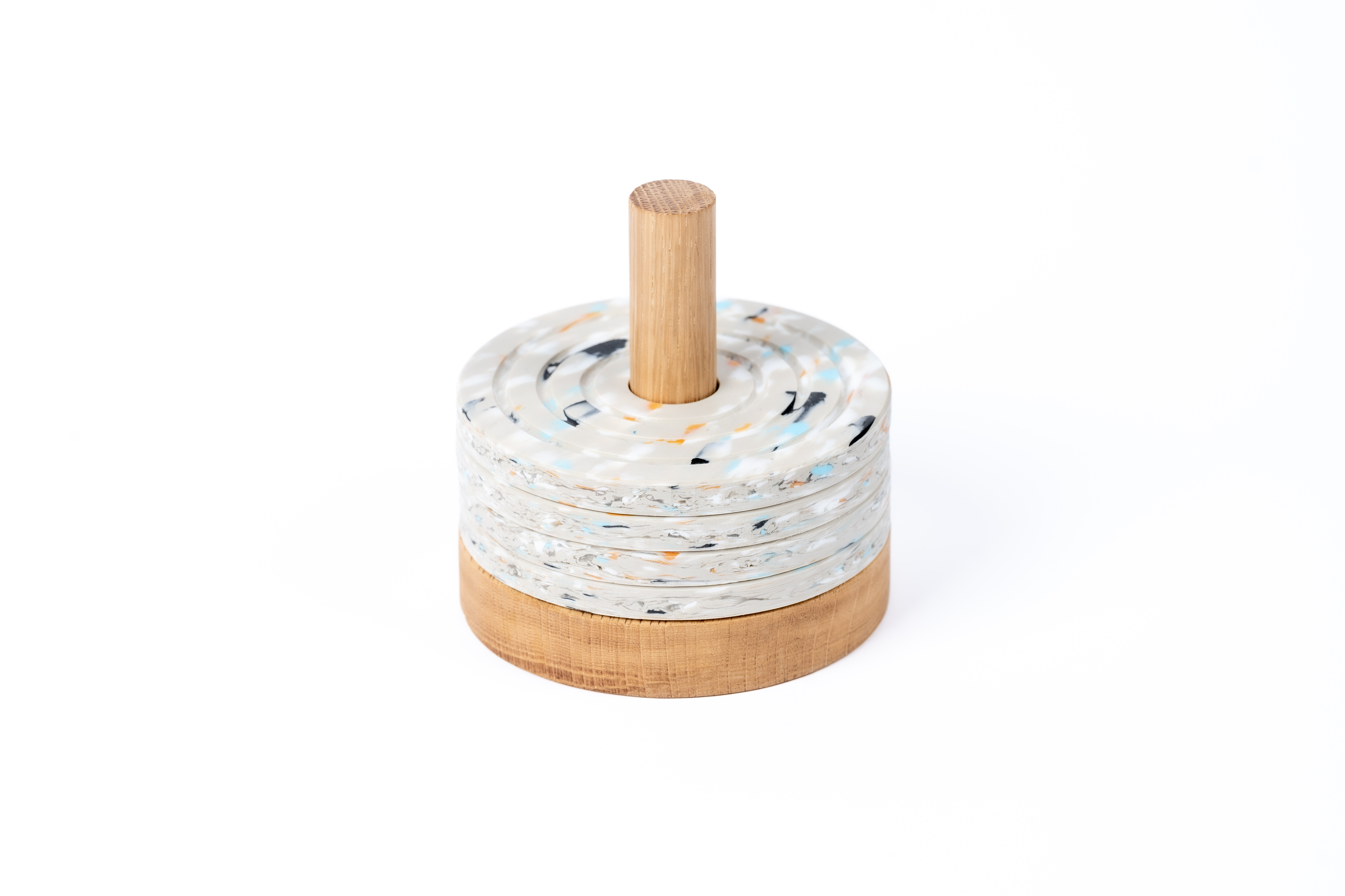 Set podtácků na masivním dřevěném stojanu z dubového nebo bukového dřeva.
