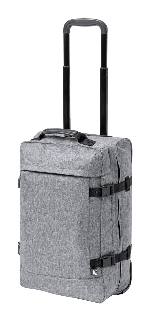 RPET taška se 2 kolečky, teleskopickou rukojetí a kombinovaným zámkem TSA. 300D RPET polyester s výrazným štítkem RPET.