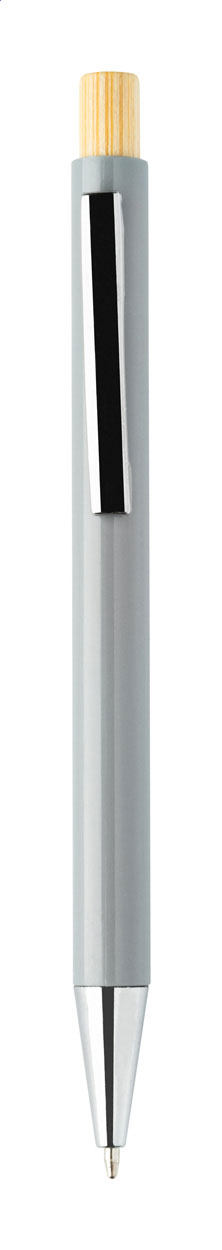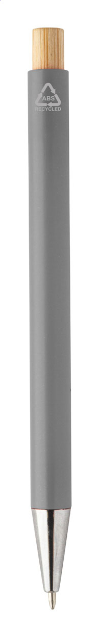 Kuličkové pero z recyklovaného ABS plastu s bambusovým tlačítkem a kovovým klipem. S modrou náplní.